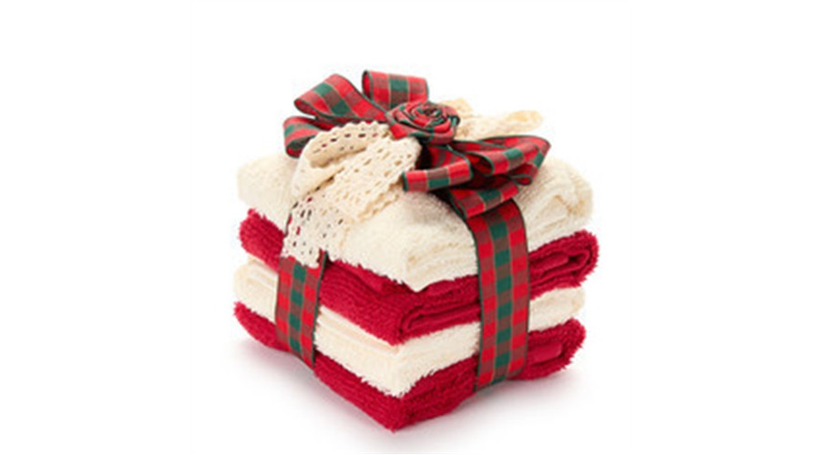 Ajándékszett: piros-krém kistörülköző 30x30cm,4db, pamut, skótkockás masnival – Nuvole di Stoffa