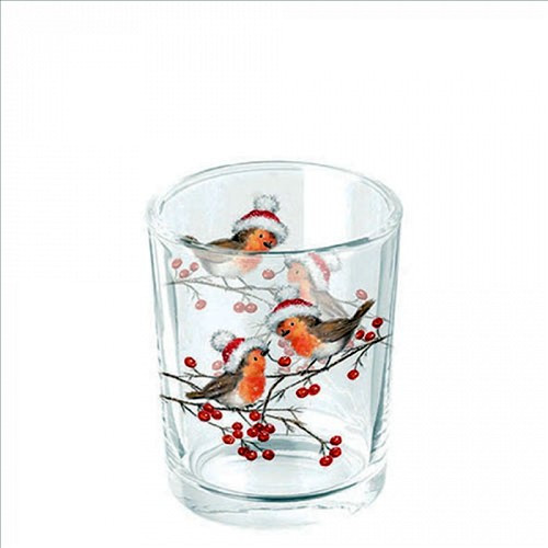 Ambiente Christmas robins white üveg mécsestartó 5,5x6cm