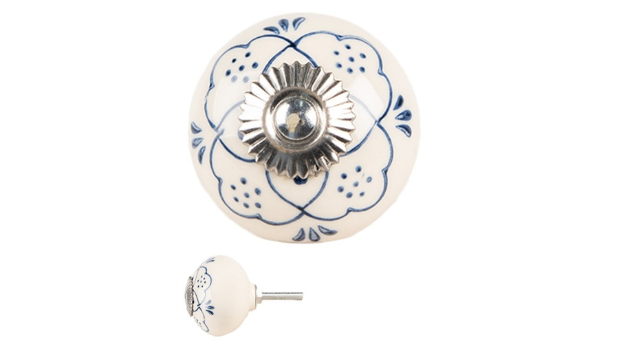 Bézs kerámia ajtógomb kék mintával, 4x3cm – Clayre-Eef