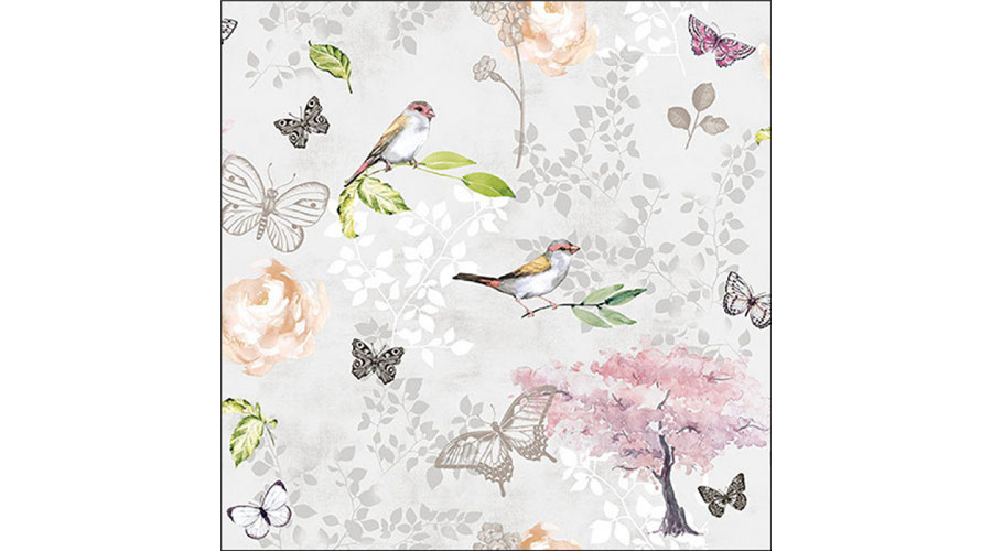 Birds and butterflies grey, papírszalvéta 33x33cm, 20db-os – Ambiente