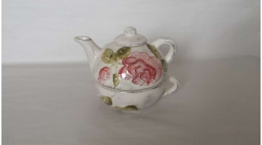 Domború mintás egyszemélyes teás, virágos bordó, kerámia, kézzel festett-2,5dl+2,5dl – Vanilia Kerámia