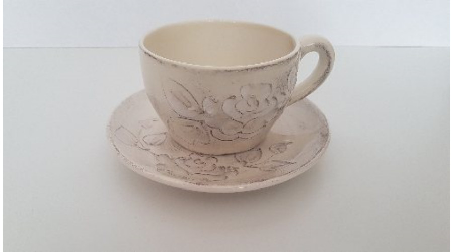 Domború mintás teás alj, virágos natúr, kerámia, kézzel festett-dia17cm – Vanilia Kerámia