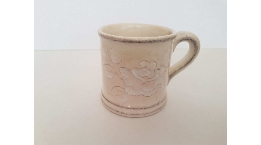 Domború mintás teásbögre egyenes, virágos natúr, kerámia, kézzel festett-3,5dl – Vanilia Kerámia