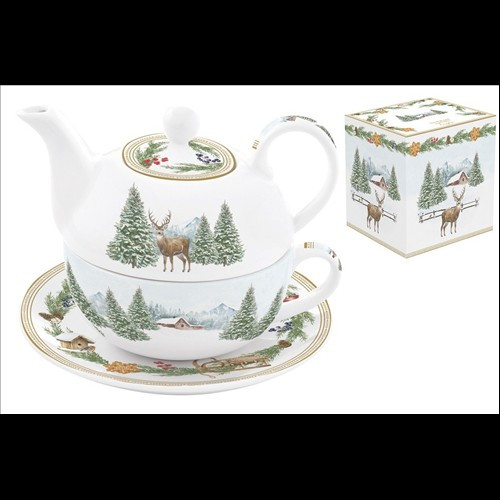 Easy Life-Nuova Porcelán egyszemélyes teáskészlet 350ml, +350ml, donozban, White Forest