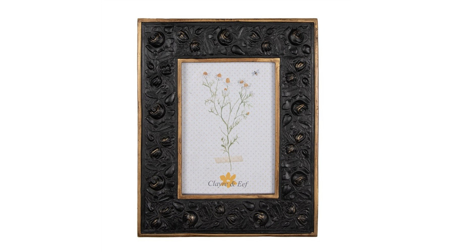Fekete rózsás képkeret arany színű szegéllyel, 23x28/13x18cm, műanyag – Clayre-Eef