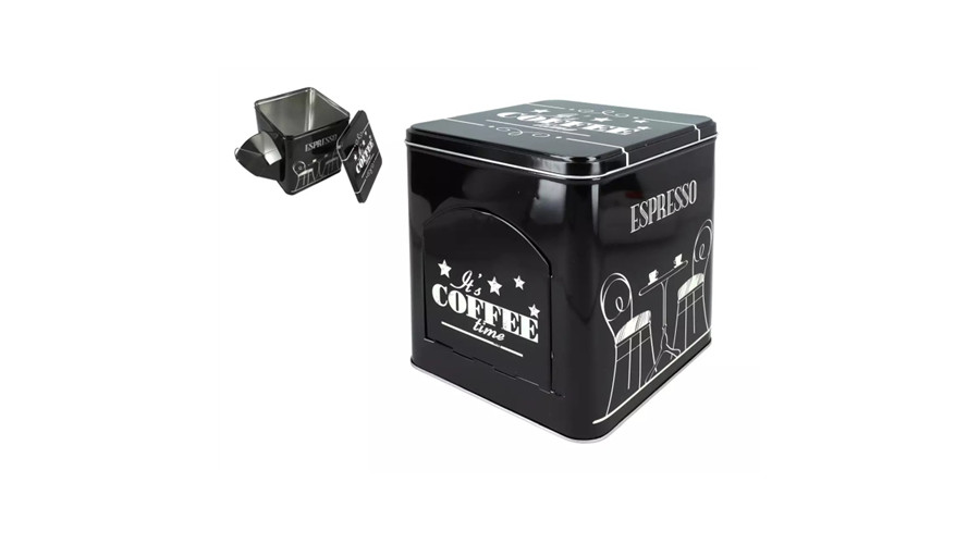 Fémdoboz 17,3x17,3x18,5cm, fekete-fehér, It's Coffeetime – Carmani