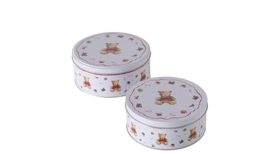 Fémdobozszett 7x16/8x18cm, piros pulcsis macival, Bailey – Boltze