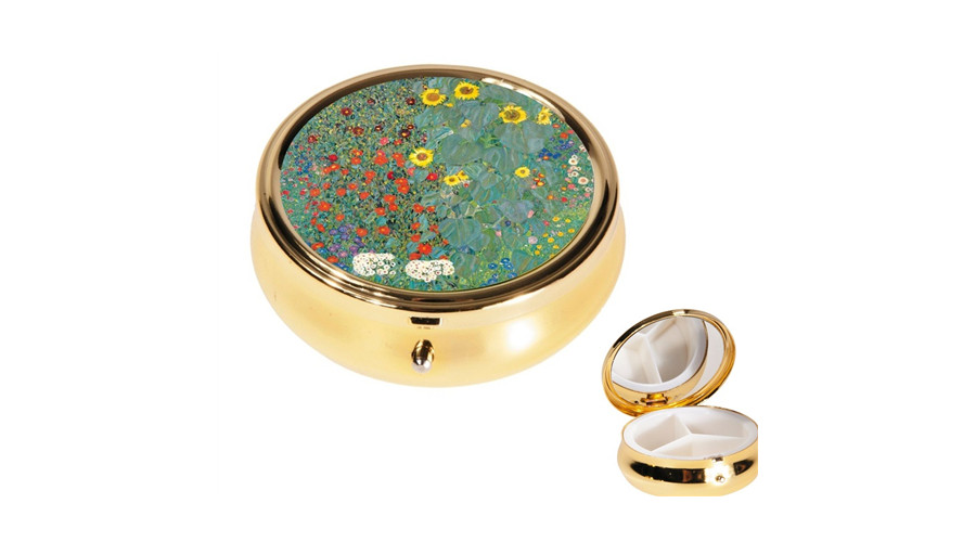Gyógyszeres fémdoboz 3 fakkos 6x2,1cm, Klimt: Kert napraforgókkal – Fridolin