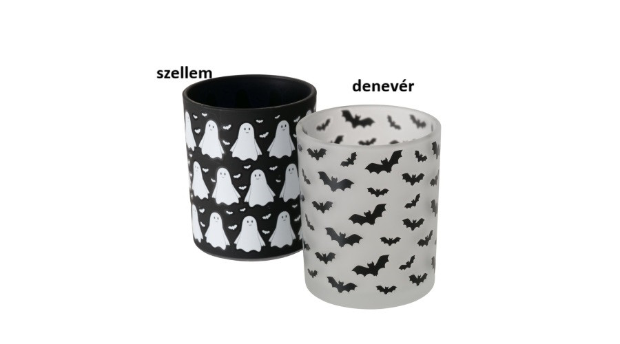 Halloween üveg mécsestartó fekete-fehér,7x8,3cm, Ghostie – Boltze