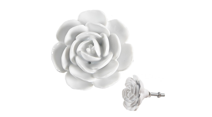 Kerámia ajtógomb, 6x3/6cm, fehér virág – Clayre-Eef