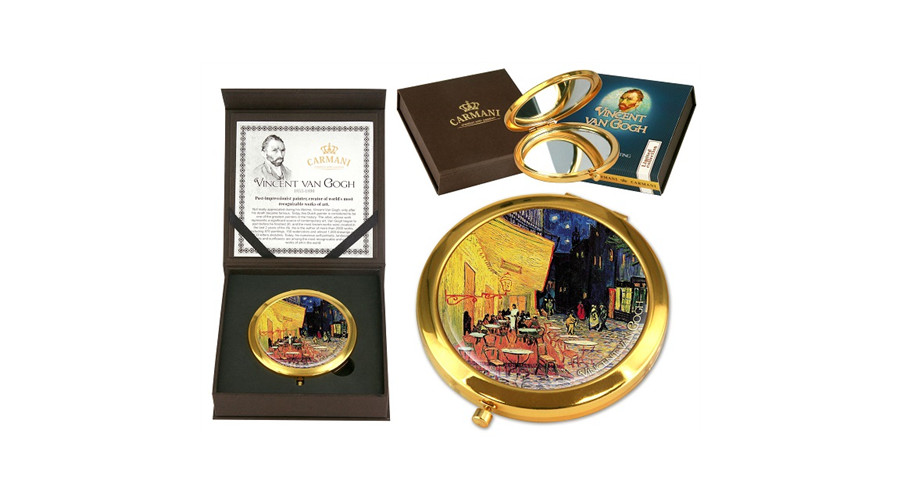 Kézitükör nagyítós, fémkeretben, dobozban,11cm, Van Gogh: Kávéház éjjel – Carmani
