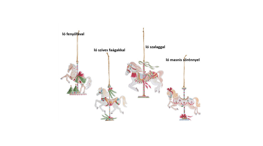 Körhintaló 12cm, műanyag függődísz, Giostra ló fenyőfával – Nuvole di Stoffa