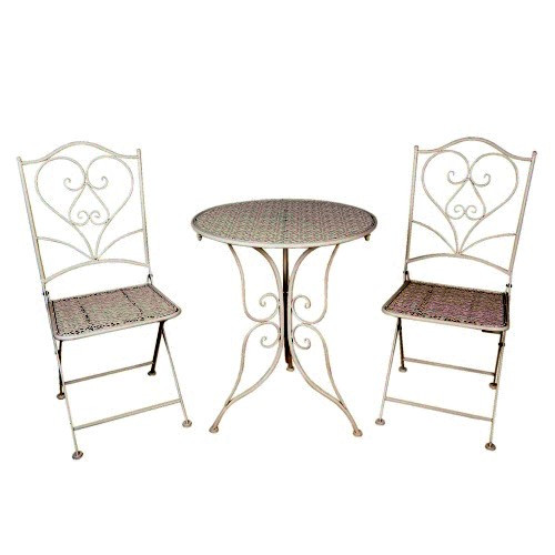 Kovácsoltvas jellegű asztal 2db székkel, fehér 60x70cm/40x40x92cm