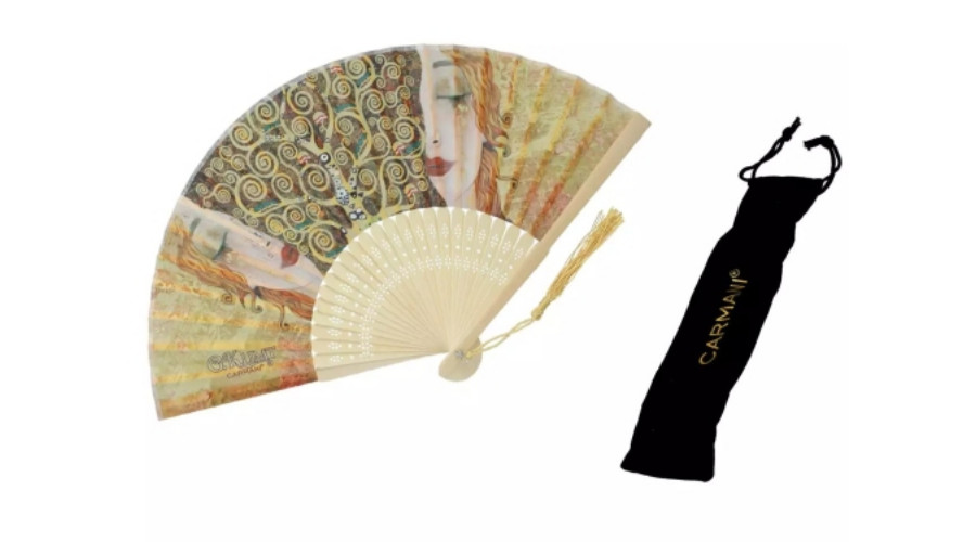 Legyező 20cm, műanyag/polyester, Klimt: Aranykönnyek – Carmani