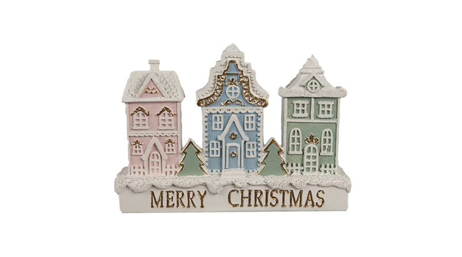 Mézeskalács Merry Christmas házsor színes, 13x4x10cm, műanyag dekorfigura – Clayre-Eef