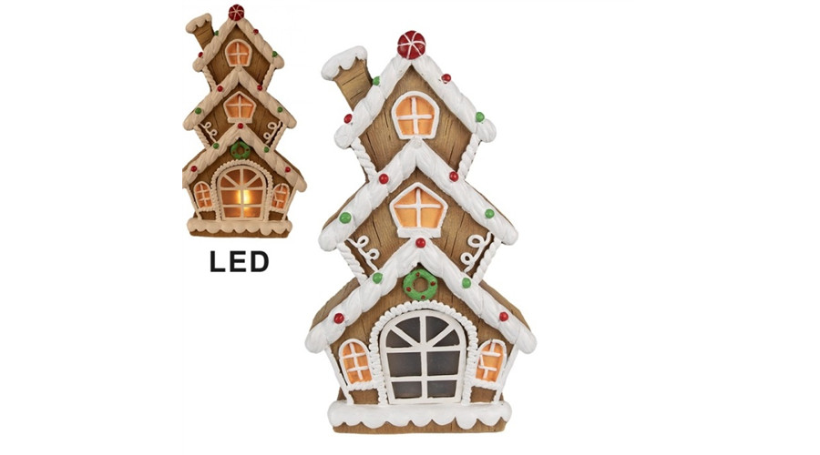 Mézeskalács emeletes házikó 24x11x41cm, LED-es, műanyag dekorfigura – Clayre-Eef