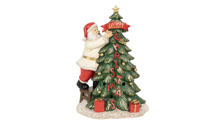 Mikulás karácsonyfával, LED-es, műanyag dekorfigura – Clayre-Eef