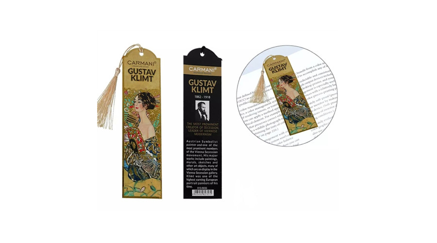 Papír könyvjelző 5x18cm, Klimt: Hölgy legyezővel – Carmani
