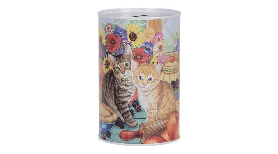 Persely fémdoboz 8x13cm, macskák az asztalon(konzervnyitós) – Clayre-Eef