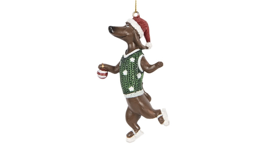 Pöttyös zöld pulcsis sötét tacsi 6x3x10cm, műanyag függődísz – Clayre-Eef