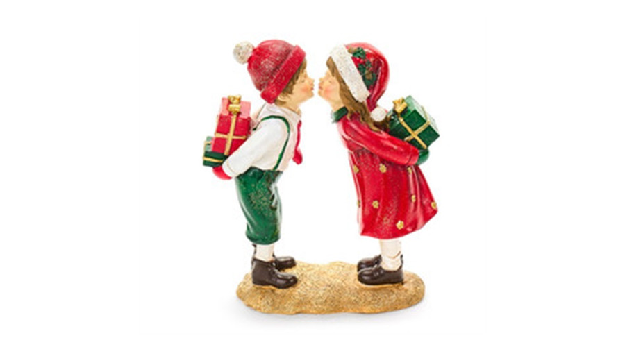 Puszilózó kisfiú-kislány csomagokkal, 15x6x18cm, műanyag dekorfigura – Nuvole di Stoffa
