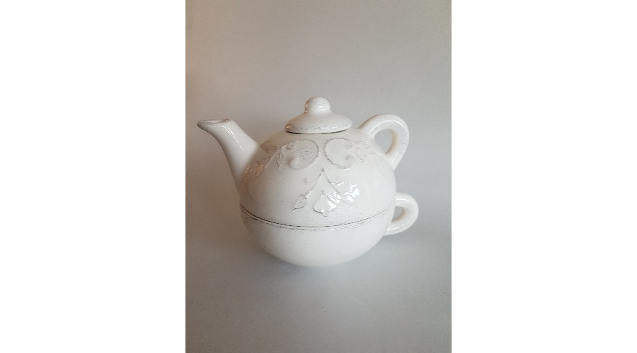 Romantik csipkés egyszemélyes teás, 0,25 l, natur, kerámia, kézzel festett – Vanilia Kerámia