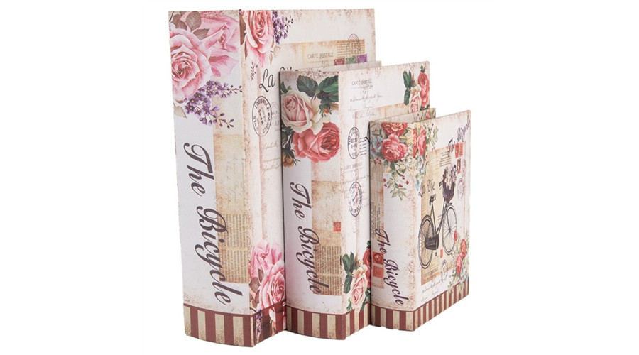 Rózsás-biciklis fadobozszett 3 részes, 27X22x7/22x17x6/17x12x4cm – Clayre-Eef