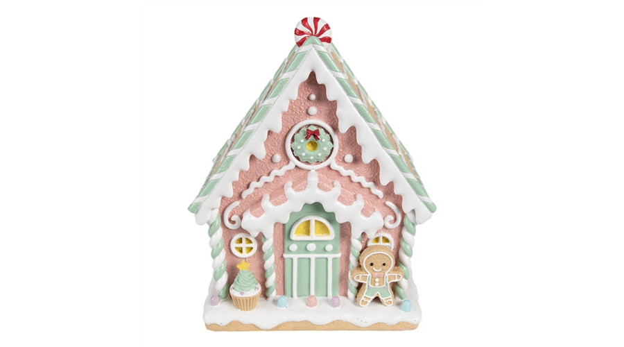 Rózsaszín mézeskalács házikó 20x16x25cm, műanyag dekorfigura – Clayre-Eef