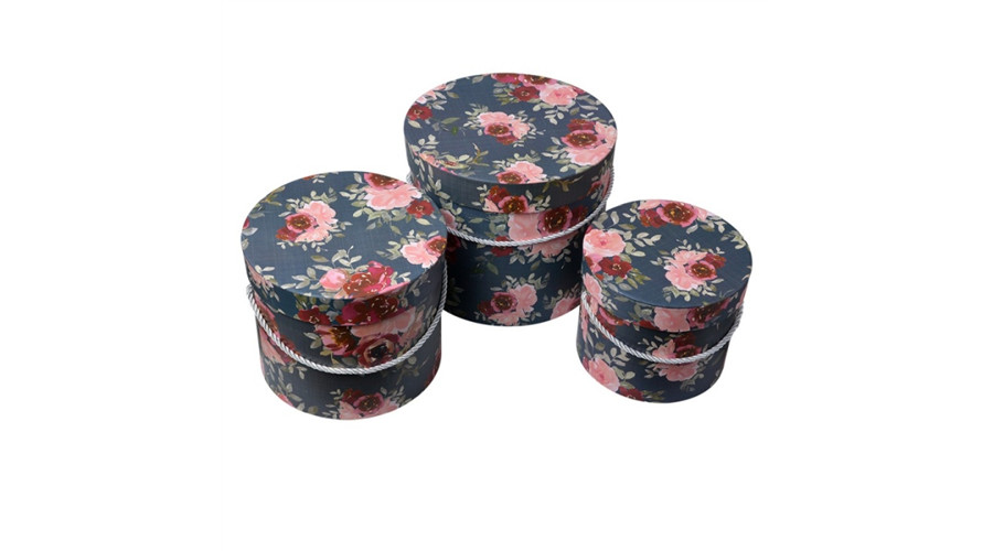 Rózsaszín rózsás kerek kartondobozszett 3 részes, 23x20/20x17/17x14cm – Clayre-Eef