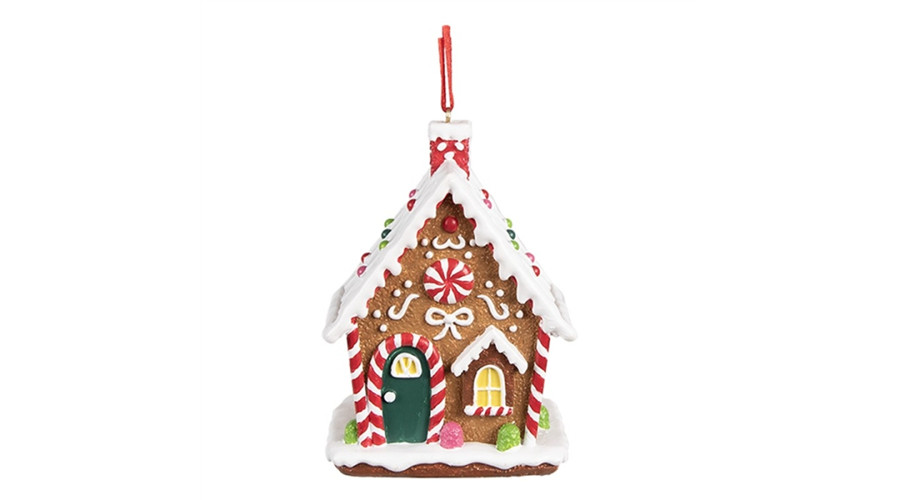 Színes mázas mézeskalács házikó 7x5x9cm, műanyag függődísz – Clayre-Eef