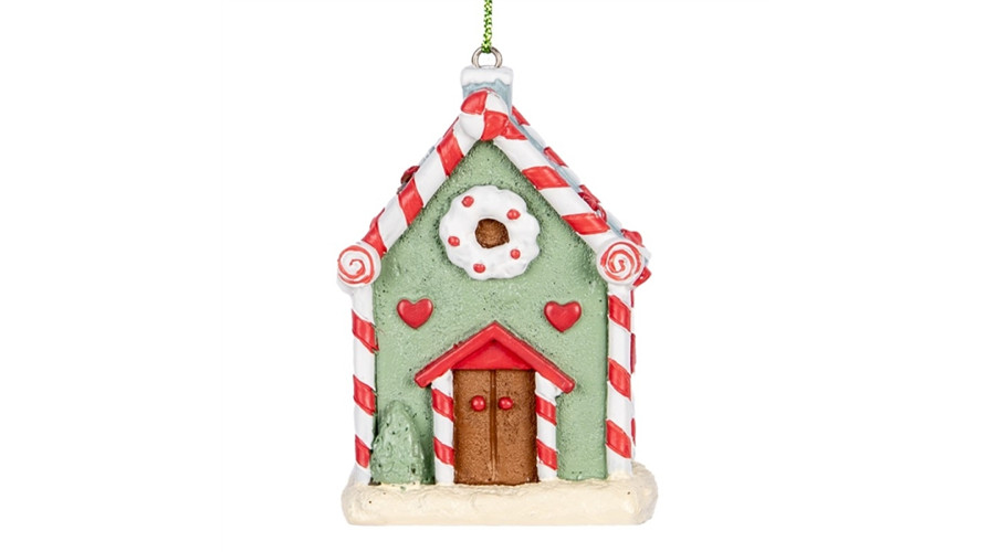 Zöld mézeskalács házikó 6x4x8cm, műanyag dekorfigura függődísz – Clayre-Eef