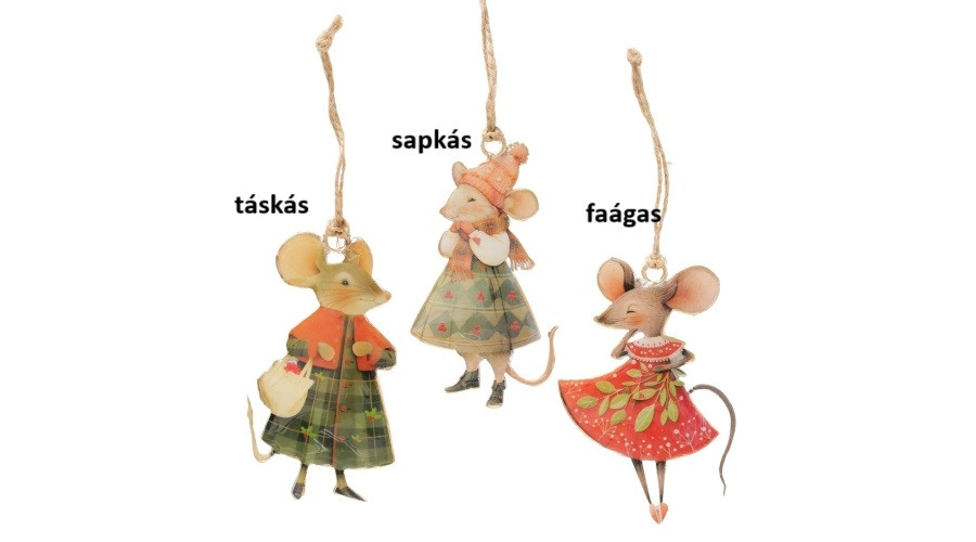 Egérke 6,5x1x10,3cm, fém függődísz, Mossy – Boltze