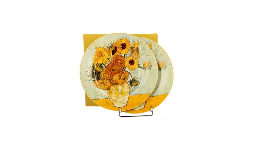 Porcelán desszerttányér szett, 2db-os, 19cm, dobozban, Van Gogh: Napraforgók – Duo Gift