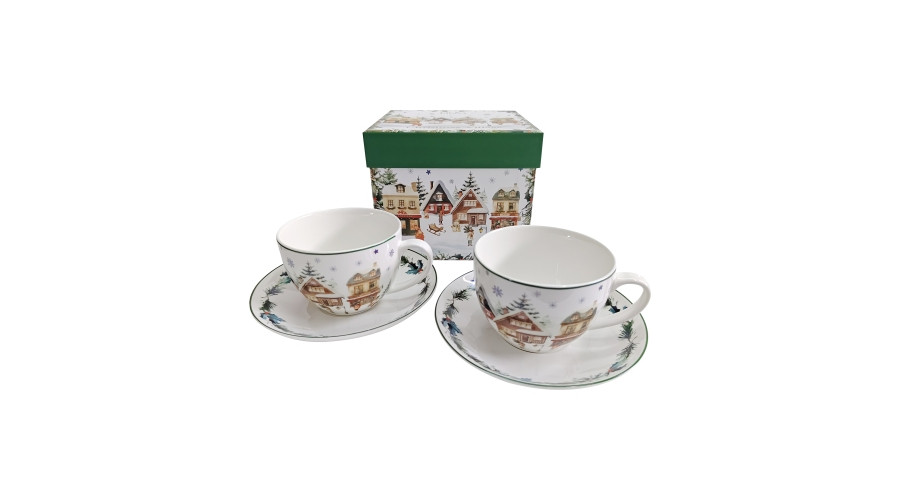 Porceláncsésze+alj, 270ml, 2 személyes, dobozban, Christmas Village – Duo Gift