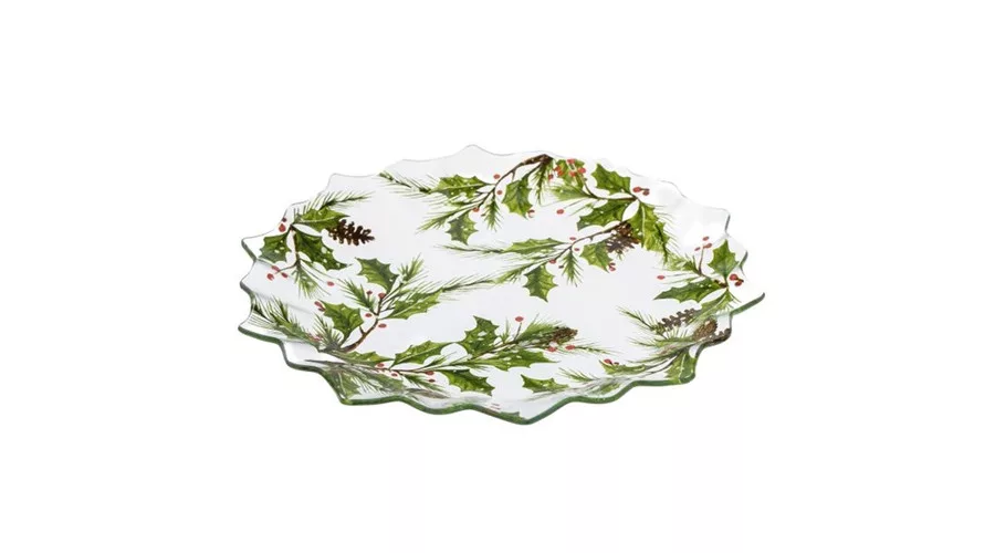 Üvegtányér 29,5x29,5x2,2cm, karácsonyi ágakkal – Dakls