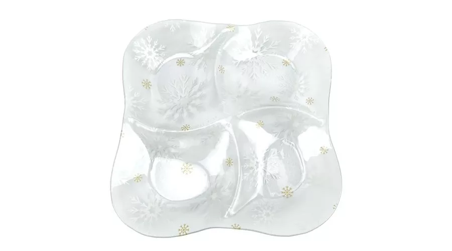 Üvegtányér 4 részes, 28,5x28,5x3,4cm, hókristályos – Dakls