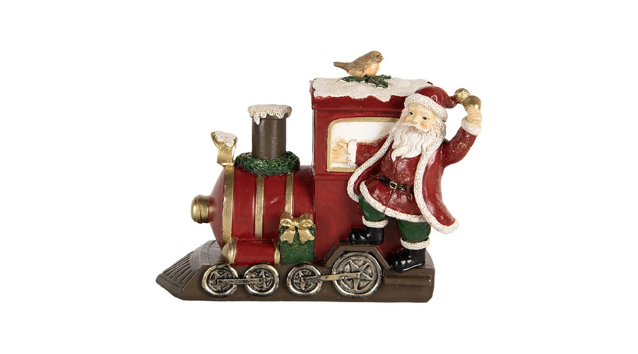 Piros mozdony mikulással, 16x10x13cm, műanyag dekorfigura – Clayre-Eef