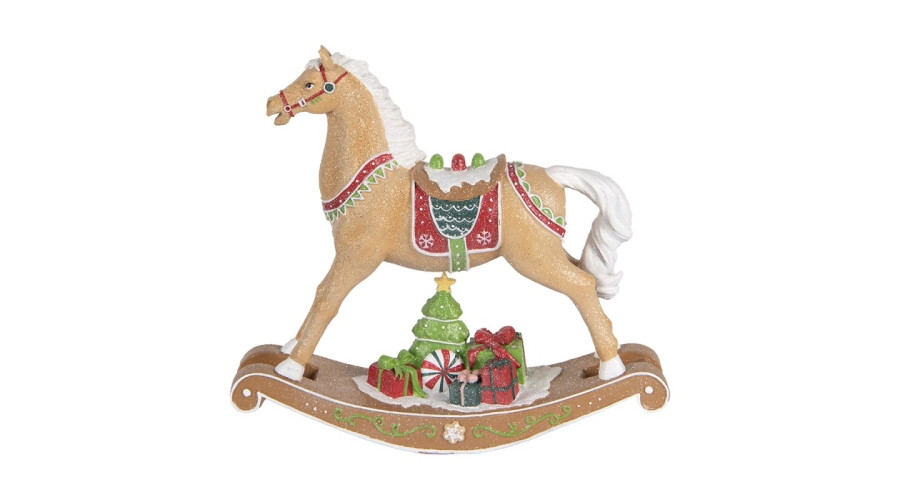 Hintaló fenyővel és ajándékokkal, 26x7x24cm, műanyag dekorfigura – Clayre-Eef