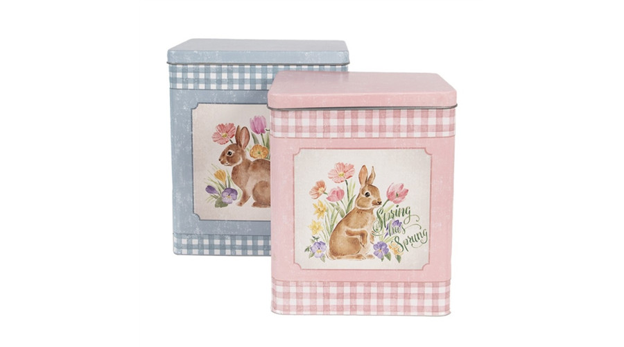 Nyuszis fémdobozszett, kék-rózsaszín, 21x15x25/18x13x22cm – Clayre-Eef