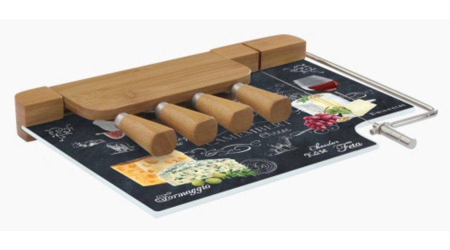 Sajtvágókészlet üveglapos, bambusz, 31,5x20cm, World Of Cheese – Easy Life-Nuova