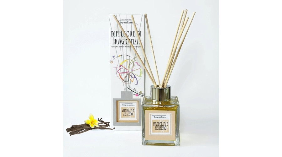Diffúzor-Calabriai illóolaj rattanpálcával, 100ml, Vaniglia & Zenzero (Vanília-Gyömbér) – Carpentieri Profumi