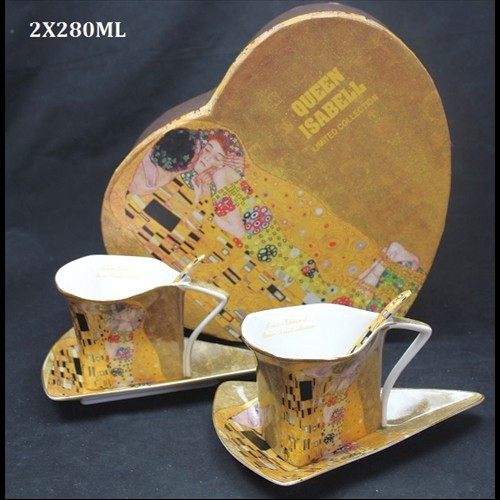 P&P Porceláncsésze+alj háromszögű, 2 személyes, 225ml, Klimt:The Kiss