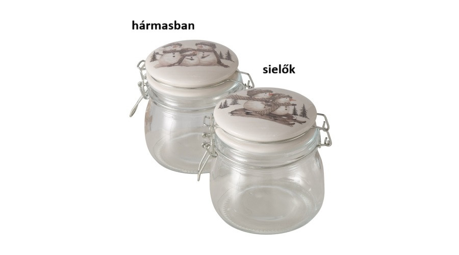 Üveg konyhai tároló csatos tetővel, 13x11x10,5cm,450ml, hóemberes, Frosty – Boltze