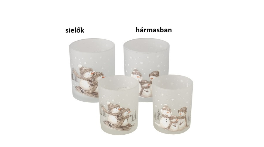 Üveg mécsestartó szett 2 db-os, 7x8,4/9x10,3cm, hóemberes, Frosty – Boltze