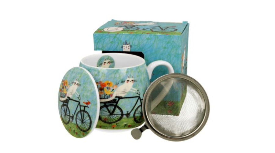 Porcelánbögre tetővel, fémszűrővel, 430ml, dobozban, Bicycle – Duo Gift