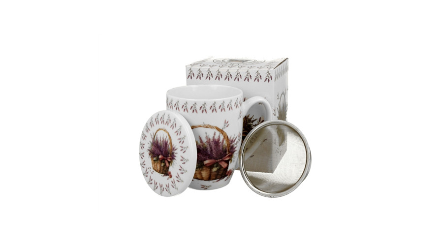 Porcelánbögre tetővel, fémszűrővel, 360ml, dobozban, Lavender – Duo Gift