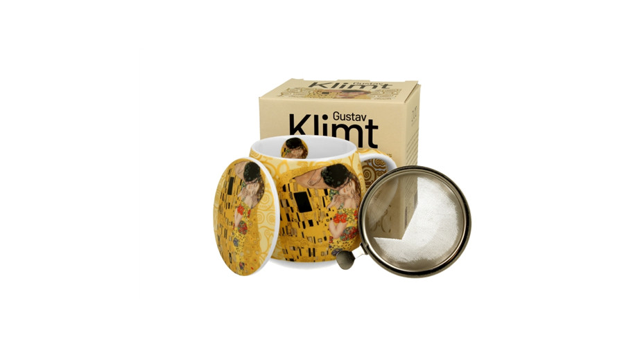 Porcelánbögre tetővel, fémszűrővel, 430ml, dobozban, Klimt:The Kiss – Duo Gift
