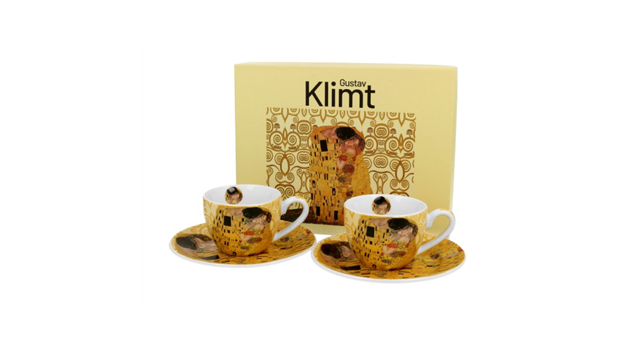 Porceláncsésze+alj, 110ml, 2 személyes, dobozban, Klimt: The Kiss – Duo Gift