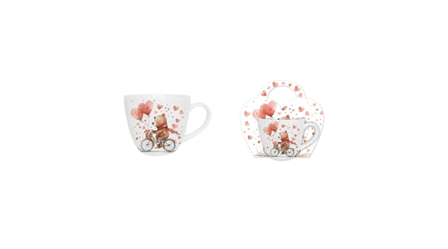 Porcelánbögre 460ml, díszcsomagolásban, Bear on a bike – Duo Gift