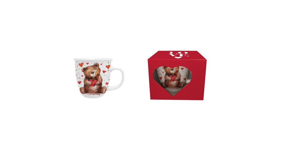 Porcelánbögre 650ml, dobozban, Teddy Bear with a Heart – Duo Gift